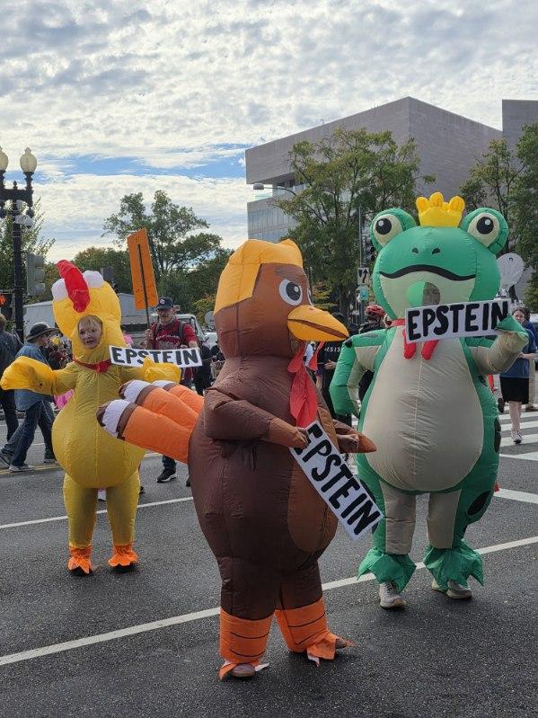 Political protesters or walking advertisements for a Halloween costume shop?