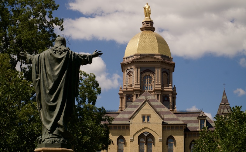 Founded by French priest Father Edward Sorin in 1842, the university’s formal name is Notre Dame du Lac, or “Our Lady of the Lake.” In the 1970s, heterodox president Father Theodore Hesburgh made Notre Dame co-educational and helped draft the heavily criticized Land O’ Lakes statement, a document approved by presidents of various Catholic universities across the U.S. that declared independence from formal Church authority and doctrines.