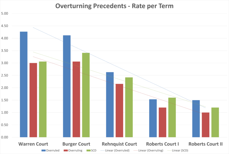 For example, the idea that the court, since I’ve been there, has overruled a lot of cases. You look at the statistics, the Warren Court overruled something like 3.2% of the cases. The Burger Court, surprisingly, perhaps even more 3.4%. The Rehnquist Court, two point something percent, and what they call the Roberts Court fewer 1.19% or something like that.