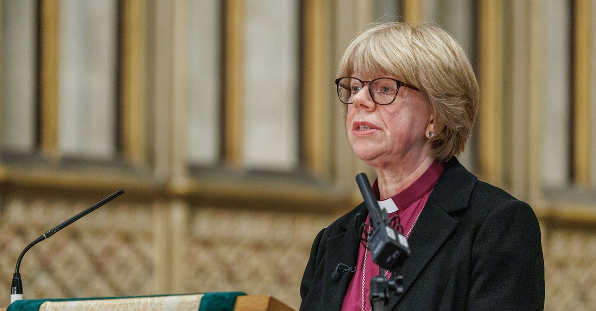 Bishop Mullally speaks in Canterbury Cathedral on Friday morning, after it had been announced that she would be the 106th Archbishop of Canterbu…