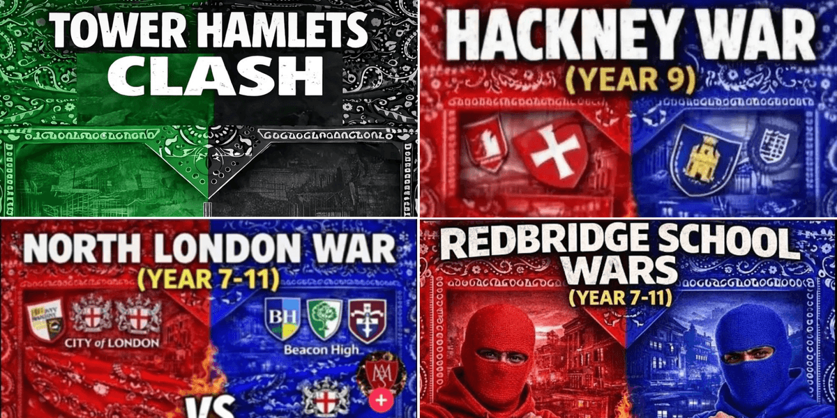 Posts, such as one promoting the so-called “Hackney War”, encourage pupils to “be violent” and to jump children from the other side.