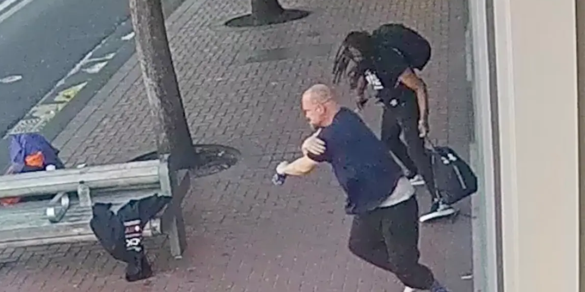 CCTV footage shows the moment Edwards approached Howard Jr, who was sitting on a bench, from behind with a fixed-blade knife in his hand.