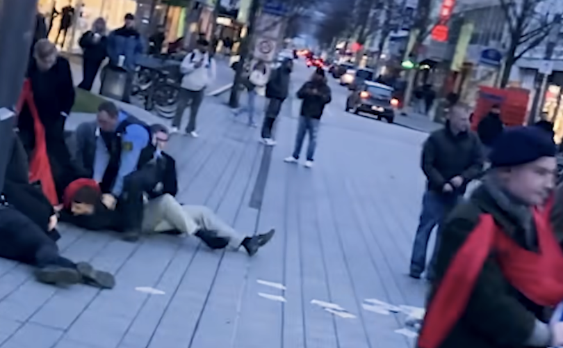 The leftists were arrested, and two pro-lifers were taken to the hospital, one with a traumatic brain injury and bruised head and the other with an injured jaw. Elias Burow from the TFP Germany, who organized the event, told LifeSiteNews that the two injured men are fine now, and he thanked “the Blessed Mother and Her angels” that no one sustained worse injuries despite the brutal attack.