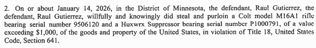In the federal complaint, Gutierez is accused of being a felon in possession of a firearm. Specifically,