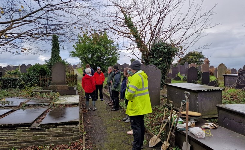 Volunteers plant bluebells at St Deiniol’s, Llanddeiniolen