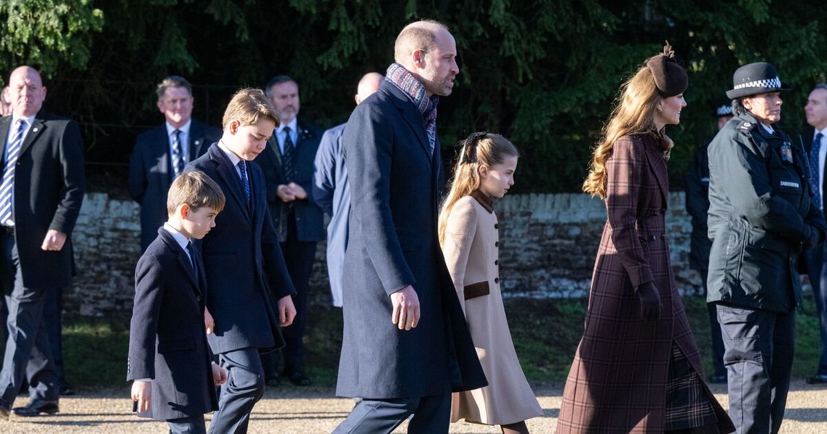 Walking side-by-side with a wrapped-up William and Catherine were their beaming children Prince George, 12, Princess Charlotte, 10, and teddy bear-carrying Prince Louis, aged seven.