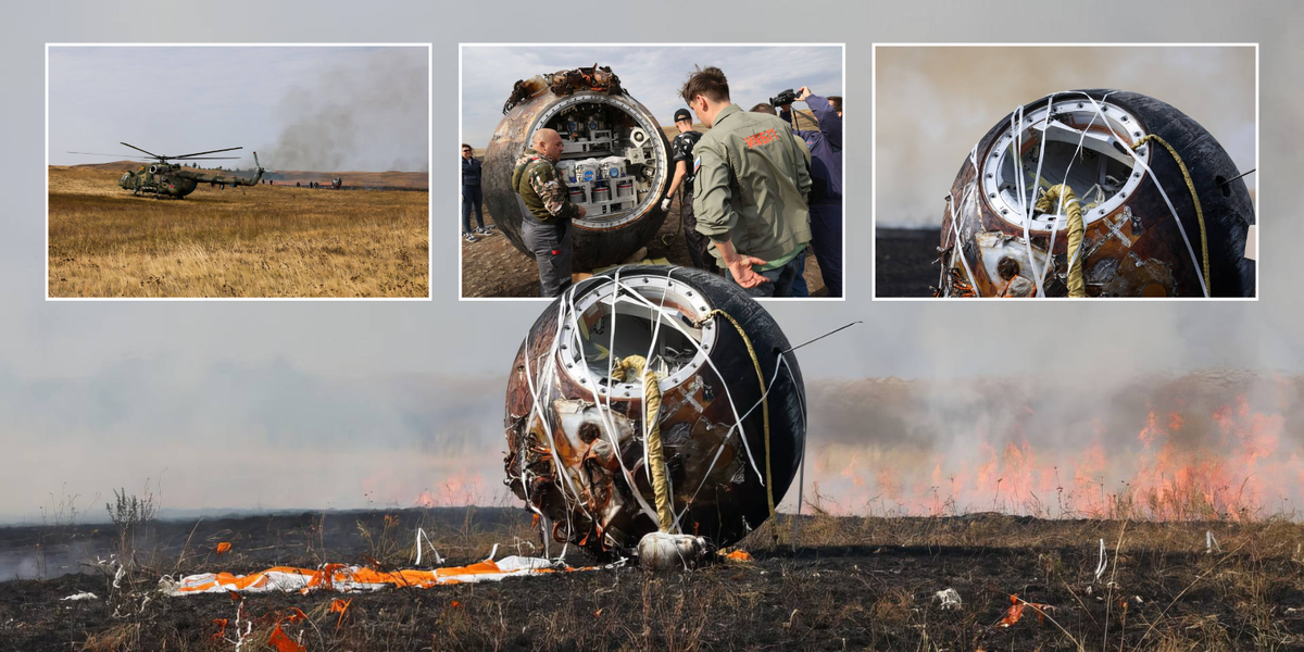 A Russian space capsule carrying more than 1,500 living creatures crash-landed to Earth – with dramatic images coming to light of its touchdown.