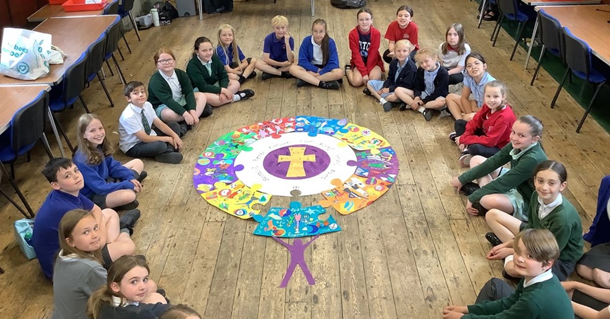 The CDLT’s logo is colourful jigsaw pieces surrounding a cross, and was inspired by an art day when “children creatively interpreted the vision”.