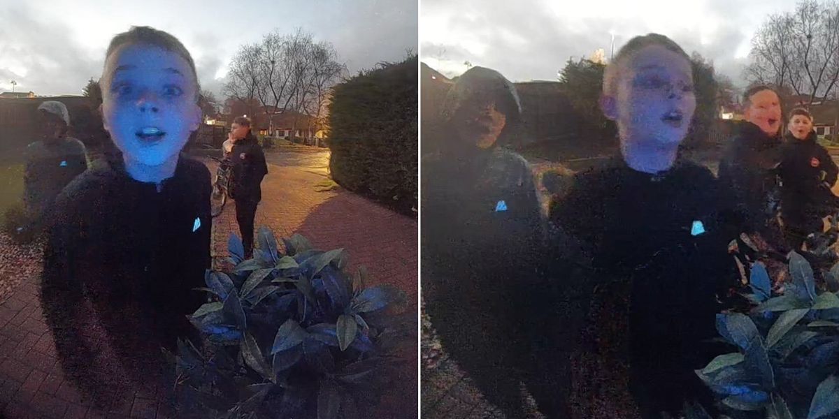 The footage reveals the boys ringing the doorbell, waiting eagerly for someone to answer.