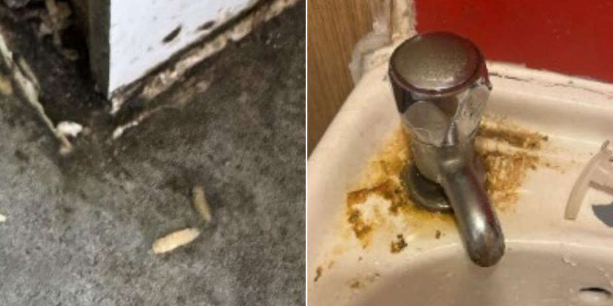 Inspectors documented casings from maggots along with dead specimens scattered across the washing-up room floor