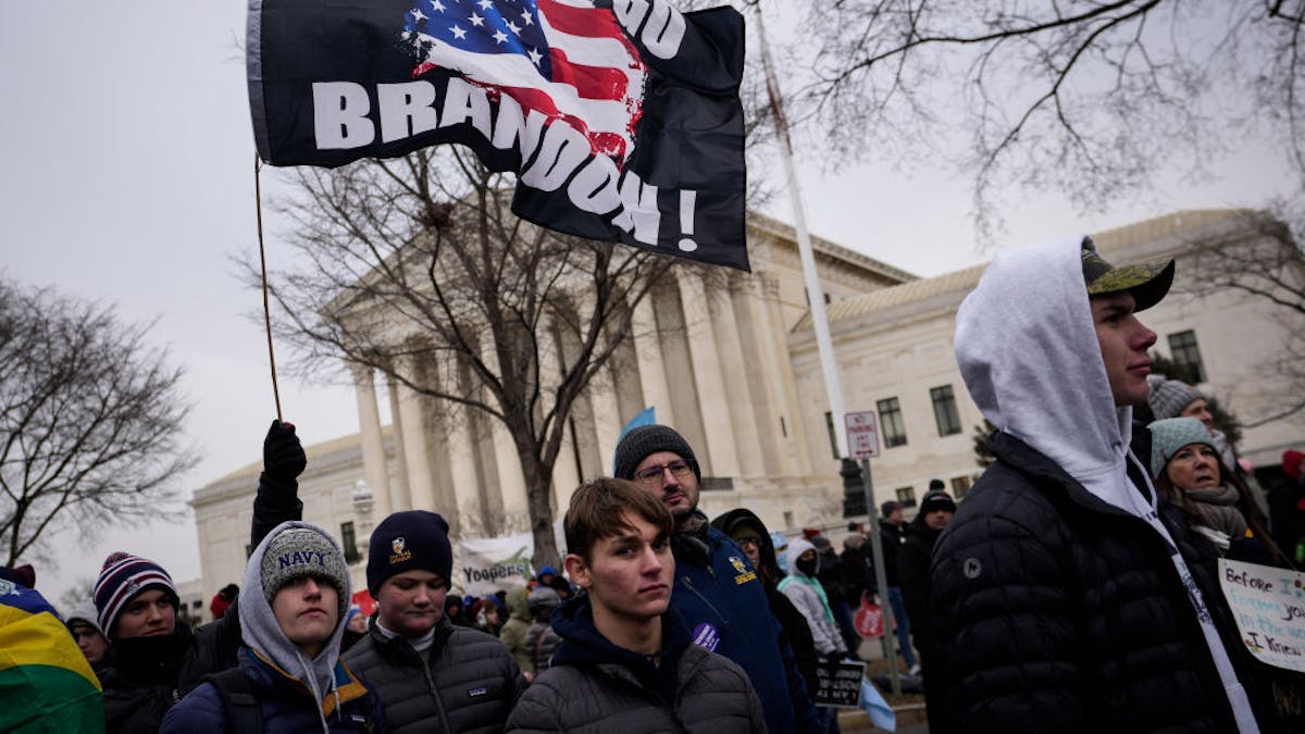 As previously discussed, “Let’s Go Brandon!” has become a similarly unintended political battle cry not just against Biden but also against media bias. It derives from an Oct. 2 interview with race-car driver Brandon Brown after he won his first NASCAR Xfinity Series race. During the interview, NBC reporter Kelli Stavast’s questions were drowned out by loud and clear chants of “F*** Joe Biden.” Stavast quickly and inexplicably declared, “You can hear the chants from the crowd, ‘Let’s go, Brandon!’”