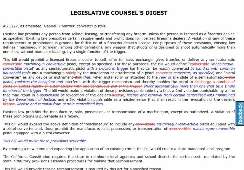 And of course, that’s what California has in mind. We all know that, no matter what changes Glock decides to make to its handguns, in order to comply with this law, it will never be enough. It’s possible to modify any handgun (or rifle) to shoot “full auto”, within the meaning of this law. Probably ten days after Glock changes its handguns to comply with this law, someone will come up with a switch for the new model. It’s not going to be difficult. Many firearms experts have already made that point.