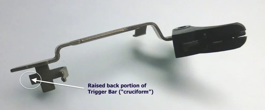 Here’s what that looks like. Some Smith & Wesson firearms, along with some firearms from Shadow Systems and FMK Firearms, also have “cruciform trigger bars.” And yes, it’s true that, if they revamp their entire product lineup, Glock can get rid of these.
