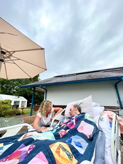 A Hospiscare patient, Mike, and his daughter in the garden in Exeter