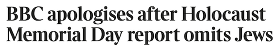 The notoriously anti-Semitic BBC topped itself on Holocaust Memorial Day, with coverage that led to this memorable headline: