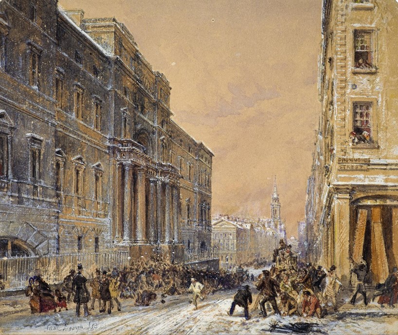 AlamySnowballing outside Edinburgh University by Samuel Bough is one of the plates in the book