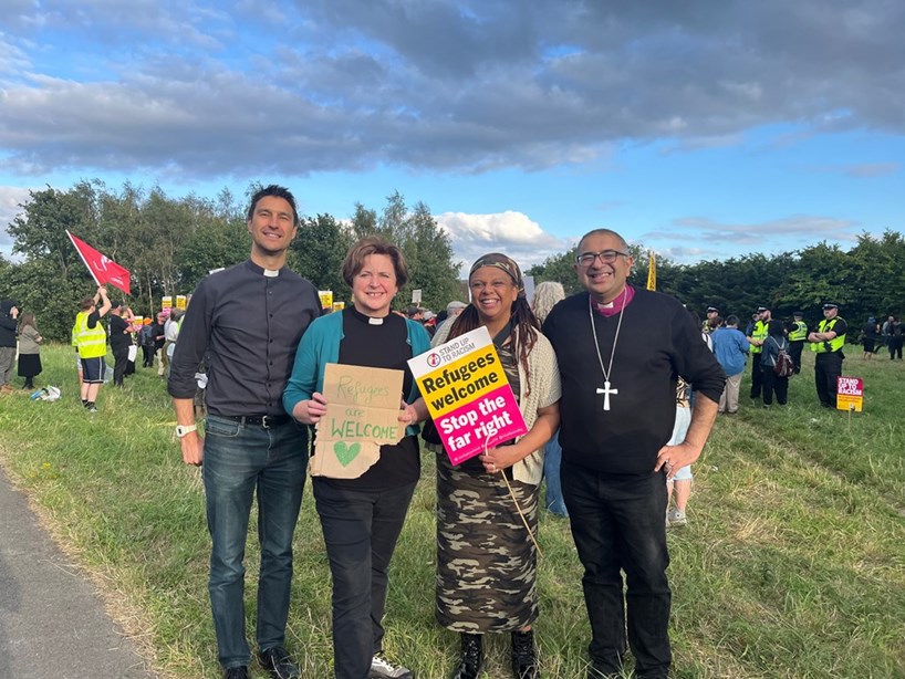ARUN ARORABishop Arora with clergy colleagues in the diocese of Leeds at a counter-protest outside a hotel hosting asylum-seekers