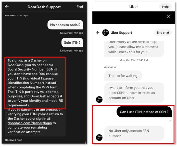 For their part, DoorDash has denied this — they say they require a social security number — but there are plenty of screenshots where their representatives have told people in the past that they only need an ITIN to create an account.