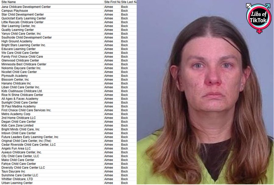 Just the other day, we learned that Aimee Bock — the white woman who helped organize the massive “Feeding our Future” scam for the Somalis — was also listed as the point of contact for 47 day care centers in Minnesota.