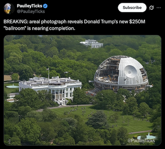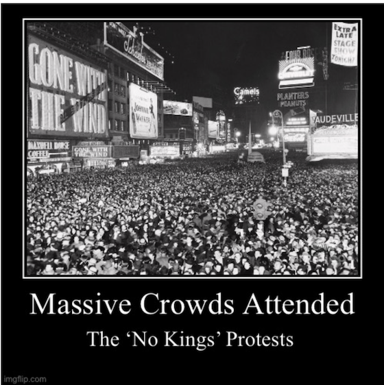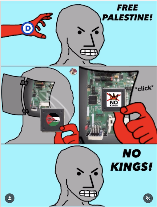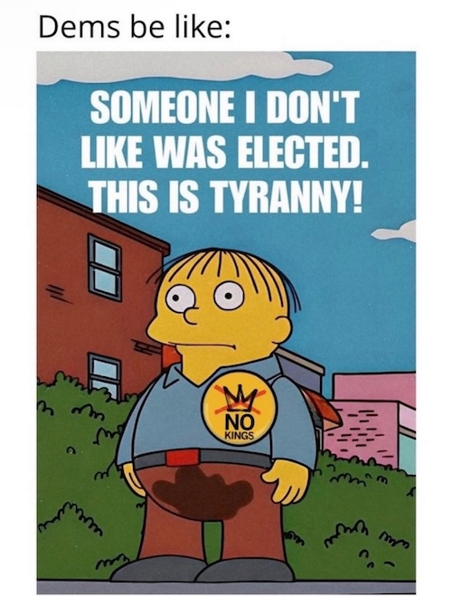 Thankfully, it wasn’t a heavy news week. So the week’s memes are dominated by soft news stories. like the No Kings protest–which, despite being over for nearly a week, continues to inspire memes–the ongoing government shutdown, the robbery of priceless jewels from the Louvre, and my personal favorite, President Trump’s demolition of the East Wing of the White House.