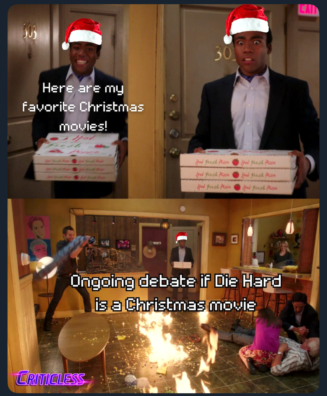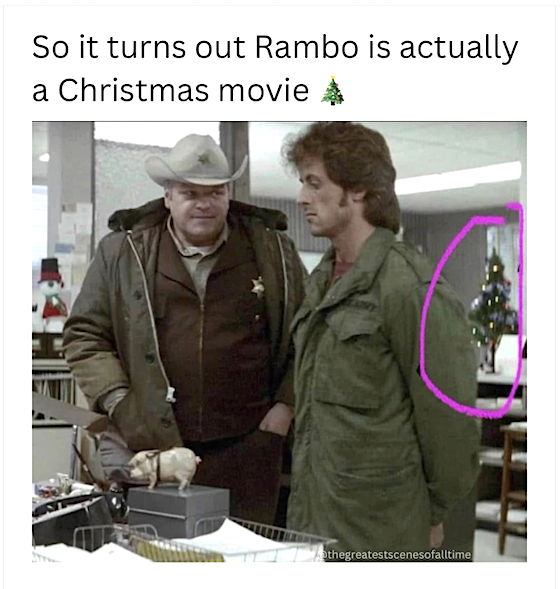 All kinds of films happen to be set around the end of the year. Has anyone ever claimed that Rambo is a Christmas movie? Of course not! And yet:
