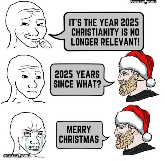 I have tried to set Steve straight on this in the past. Sure, the action takes place on Christmas Eve. But that is coincidental: the party could just as well have been celebrating Valentine’s Day. And the action of the film—which is largely horrifying, by the way—has nothing to do with Christmas themes of peace and joy.