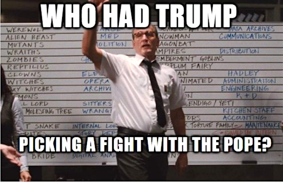 Speaking of Jesus, the Pope tried to intervene in the midterm elections on behalf of the Democrats–he was a Chicago lefty before he became Pope–and President Trump didn’t take it lying down. The memesters were generally on Trump’s side.