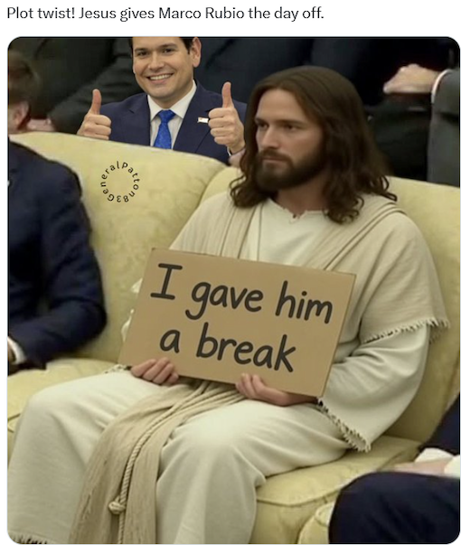 President Trump posted an AI-generated image of himself as Jesus, or maybe just as a doctor, healing someone. That prompted howls of outrage from the people who are always howling in outrage, and an extraordinary outpouring of memes showing Trump and others as Jesus, or just as healers.