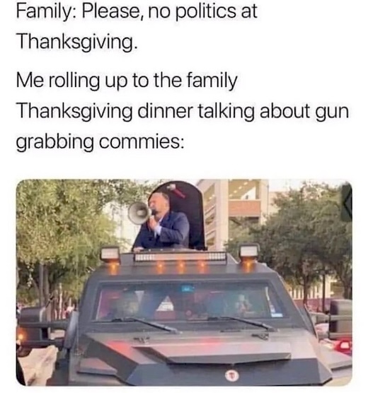 So, Happy Thanksgiving, everyone. And let’s never forget that most of the country is normal.