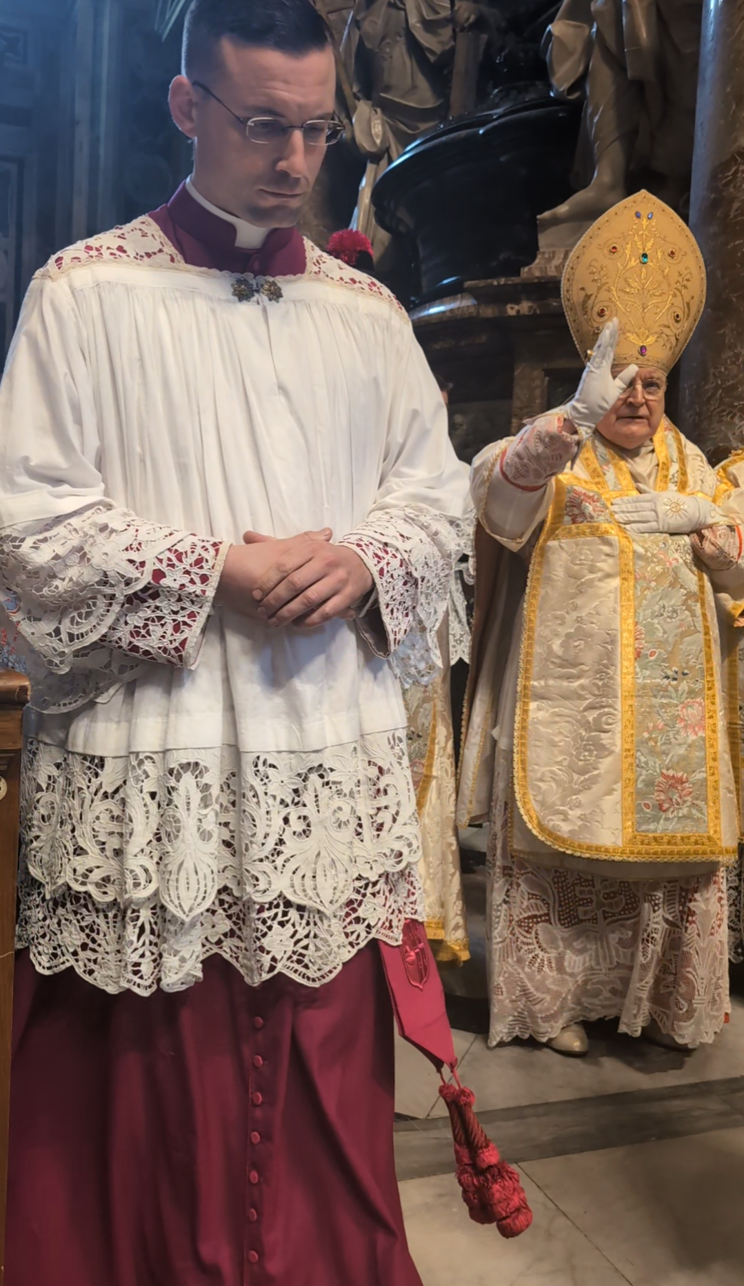 This was her second Summorum Pontificum Pilgrimage, made this year for her late father, who had died two months prior. Despite financial and personal difficulties, her gratitude was radiant. After attending the pilgrimage once before under Pope Francis, she was disheartened when the Pontifical High Mass in the basilica was discontinued. By the time she booked this year’s journey, it was uncertain whether the Mass would return.