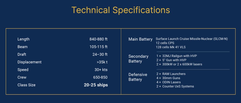 “America’s next battleship, the USS Defiant, will be part of a new class of large surface combatants with the most destructive fire power of any surface ship to ever sail — having the ability to strike an adversary at 80x the range of the previous class,” the website states. “The Trump-class Battleship will be the first-ever guided missile battleship with the ability to deploy with nuclear and hypersonic missiles.”