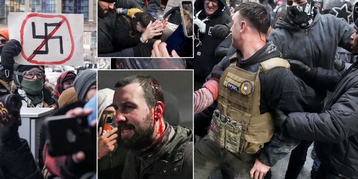 Violent clashes break out as anti-Ice activist accused of attempting to stab counter-protester