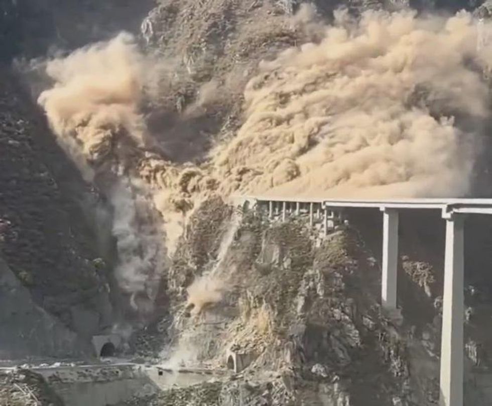 Footage showed the bridge in the country’s southwestern Sichuan province crashing to the ground next to a mountain as clouds of smoke billowed.