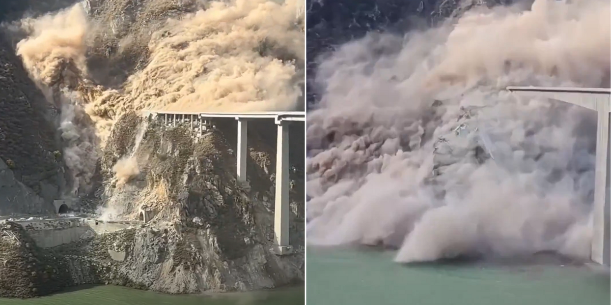 This is the moment a 2,500-foot-tall bridge in China dramatically collapsed – just months after it opened.