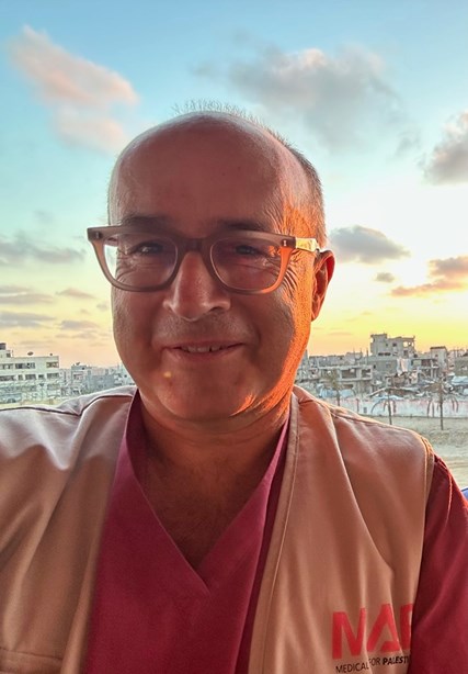 We speak just after his return from his third trip with Medical Aid for Palestinians, whose board he now chairs. The charity sends in surgeons to Gazan hospitals. This time, he stayed a month and was injured in an attack on Nasser Hospital, where he was working.