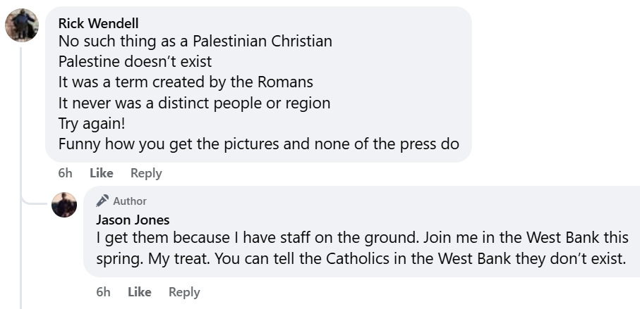 Take Father Rick Wendell, a Catholic priest in Wisconsin who recently told me flatly that there’s “no such thing as a Palestinian Christian.”