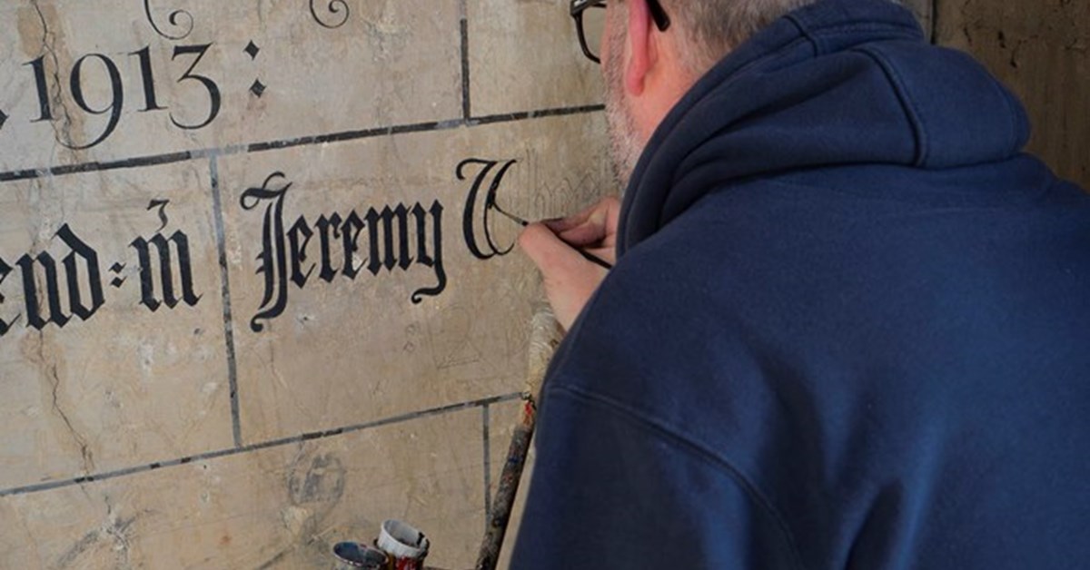 Mr Wheeldon’s name has been added in the style of previous additions by Jay Chapman, a signwriter based in Newark. Often Mr Chapman works with oil paints and enamel, but for this job he used “special breathable water-based paint” because he was “painting directly on to the lime plaster”.